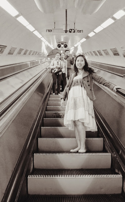 At the Metro Station waiting for our train and escalator ride after. This had been the longest and steepest escalator I have tried so far.