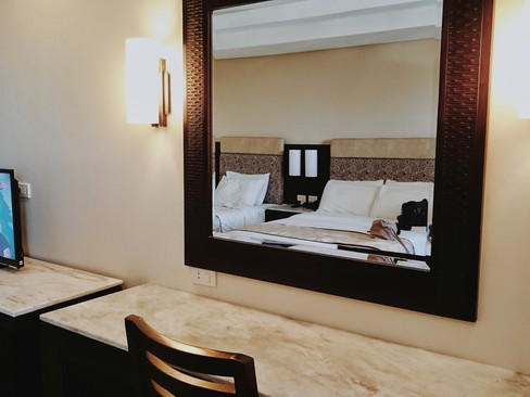 I booked for a Superior Room which came with one queen bed and one single bed. The room was spacious and the beds were comfy and clean. There was enough space for the three of us. It has a small table and chairs. The comfort room was also good with complete toiletries. And the balcony offered a good view of the hotel.