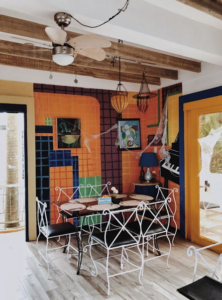 From the all white and blue motif from the outside, the inner style was busting with colors.