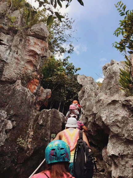 Masungi came from the word 'Masungki' which means spiked. You will know why it was named after it once you are inside. You will be greeted by a luscious of green surroundings with a nice landscape of concreted path walks and natural spiked rocks which they never remove and remained on their original location. There are sheds where you can sit while waiting for your time. Every group will have an assigned Park Ranger Guide/s of one or two who will do all the briefing and will be your company until the end of the trail. Our tour includes a light snack which you will be given an option to be eaten before or after the hike . We prefer the latter as we had our breakfast before coming to the site. And we know we will need it more after. But make sure that your body will have something to burn before the hike. Have your stomach full and ready.